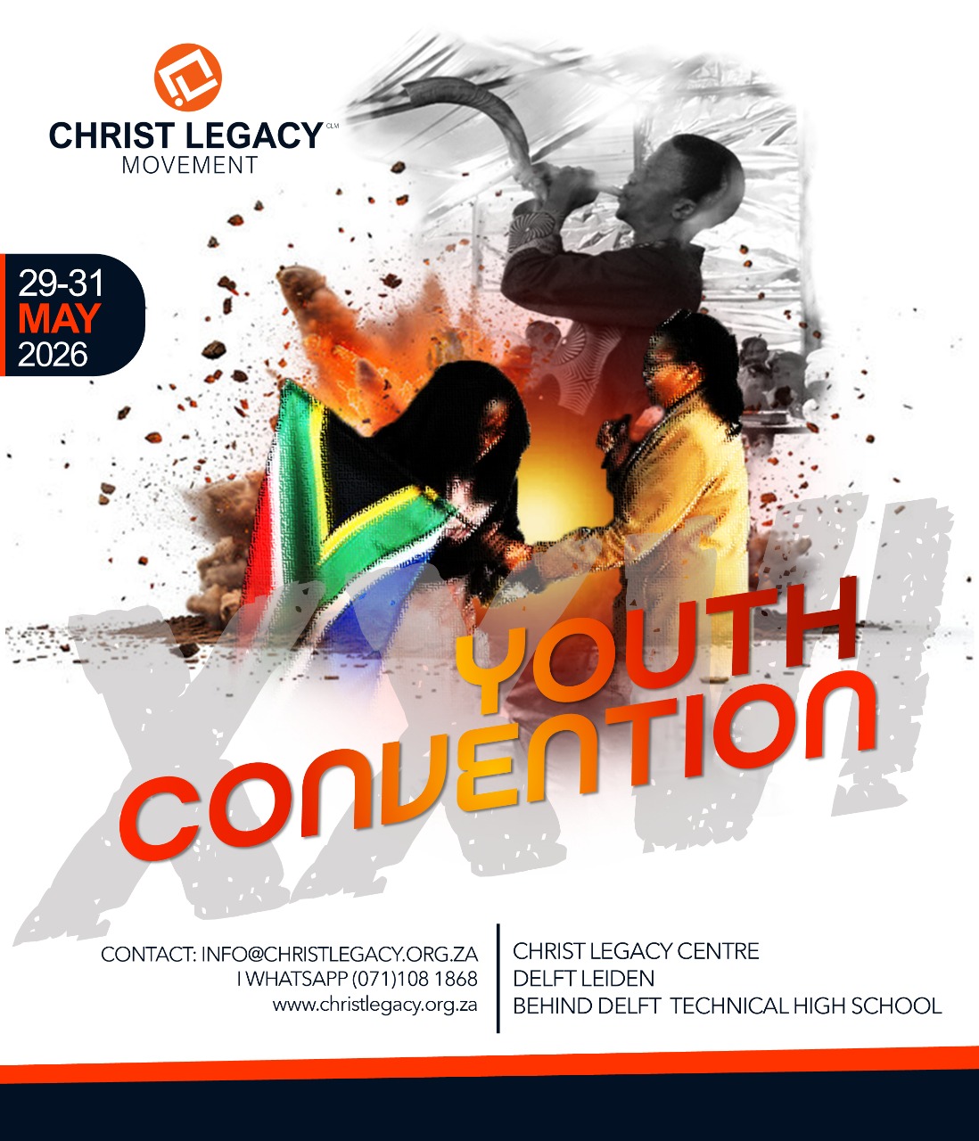 YOUTH CONVENTIONBy admin / 28/12/2025 YOUTH CONVENTION by Christ Legacy Movement 54 54 people viewed this event. Register for event To register for this event email your details to admin@christlegacy.org.za Register using webmail: Gmail / AOL / Yahoo / Outlook Date And Time Fri-May-2026 @ 17:00 to Sun-May-2026 @ 15:00 Location Christ Legacy Movement Share With Friends Facebook Twitter Linkedin Xing Pinterest
